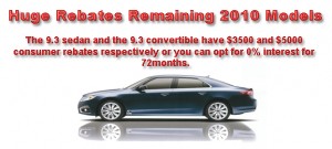 The Saab 9-5 is more upgraded but a bit more expensive than the 9-3, but is well worth the price. The new 9.5 ‘s are in stock, and Saab has a special lease program for 27 months at $439 a month. It requires a cap cost reduction of $3948. We also have one 2010 9.5 Aero left.